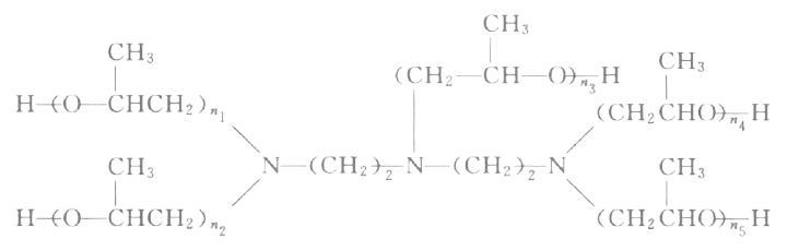 (1) Polyether pentol prepared with diethylenetriamine as an initiator is a transparent, highly viscous liquid. For example, a polyether pentaol with an average molecular weight of 398 and a hydroxyl value of 648 mg KOH/g has a viscosity of approximately 100 Pa·s (at 30°C), a color (APHA) of less than 200, and a water content of less than 0.1%. Because this polyether structure contains tertiary amino groups, it can be used as a catalytic crosslinking agent for rigid and semi-rigid foams. When mixed with low-functionality polyethers such as triols or tetraols, it can produce rigid foams with good dimensional stability and high compressive strength, and is particularly suitable for in-situ spray foaming formulations.