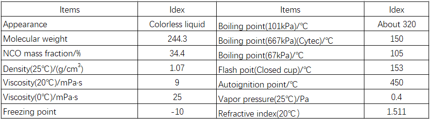 The methyl substitution of hydrogen atoms improves UV aging resistance and hydrolysis stability, weakens hydrogen bonding, and increases the elongation of polyurethanes. Furthermore, the two NCO groups of TMXDI are tertiary NCO groups, and due to steric hindrance, the reactivity of the NCO groups is reduced. Its low reactivity allows for emulsification at higher temperatures and results in lower prepolymer viscosity, making it particularly suitable for the preparation of waterborne polyurethanes without the need for organic solvents. It can be used in the production of solvent-free waterborne polyurethane adhesives and coatings, including waterborne polyurethane automotive primers, waterborne plastic coatings and wood coatings, waterborne inks, low-temperature activated waterborne polyurethane adhesives, lamination adhesives, and waterborne polyurethane leather finishes.