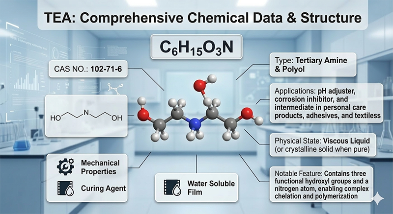 Commercially available TEOA products range from high-purity grades (over 99% purity) to grades containing 95%, 90%, 85%, etc., of TEOA; these typically contain water and small amounts of diethanolamine. First-grade products generally possess a purity of ≥98.5% and a moisture content of ≤0.3%.